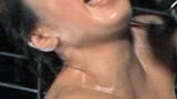 スレンダーの美人女捜査官がガーターストッキングだけ残した状態で丸裸にされ、開脚させられている。まさに万事休すか。そこへ極太ディルドや電気を放出する淫具、そして電動ドリルによる公開絶頂処刑が開始される。こんな目に遭う女捜査官なんて、いるのかな? / 残酷な鉄枷で両足を開かされてメチャクチャに秘部を責められ気を失う女捜査官